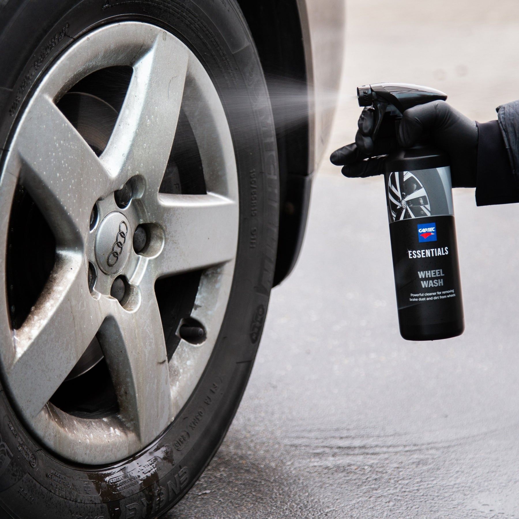 Velgen donkergrijs of zelfs zwart door de vervuiling? Met de professionele velgenreiniger van Cartec Essentials verwijder je deze vervuiling binnen no-time van de velgen.
